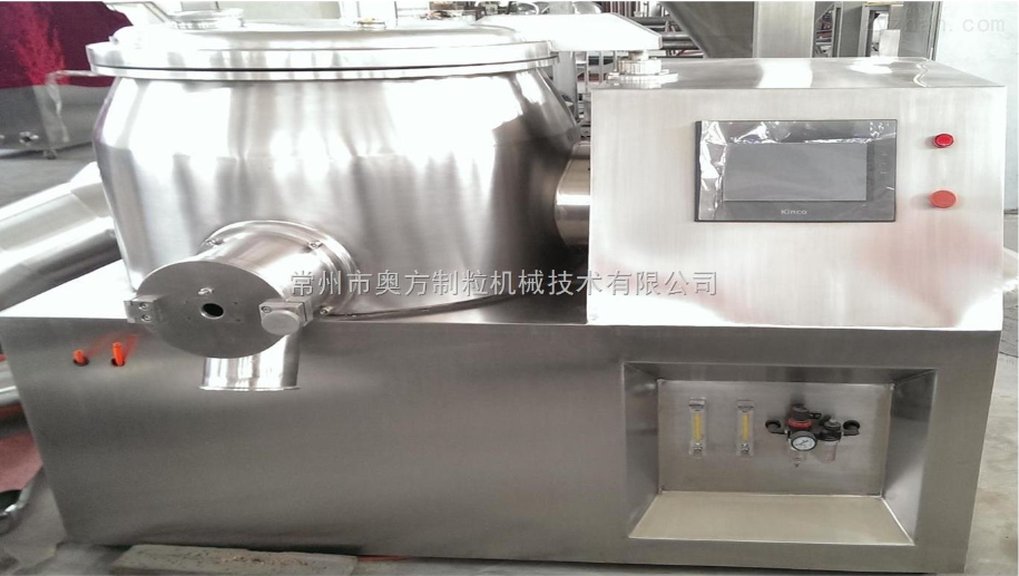 3、操作便捷:采用自動控制系統,設定參數即可實現自動化生產,在同一封閉容器內完成干混、濕混、制粒,工藝縮減,符合GMP標準。